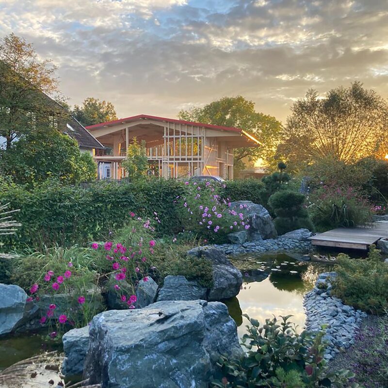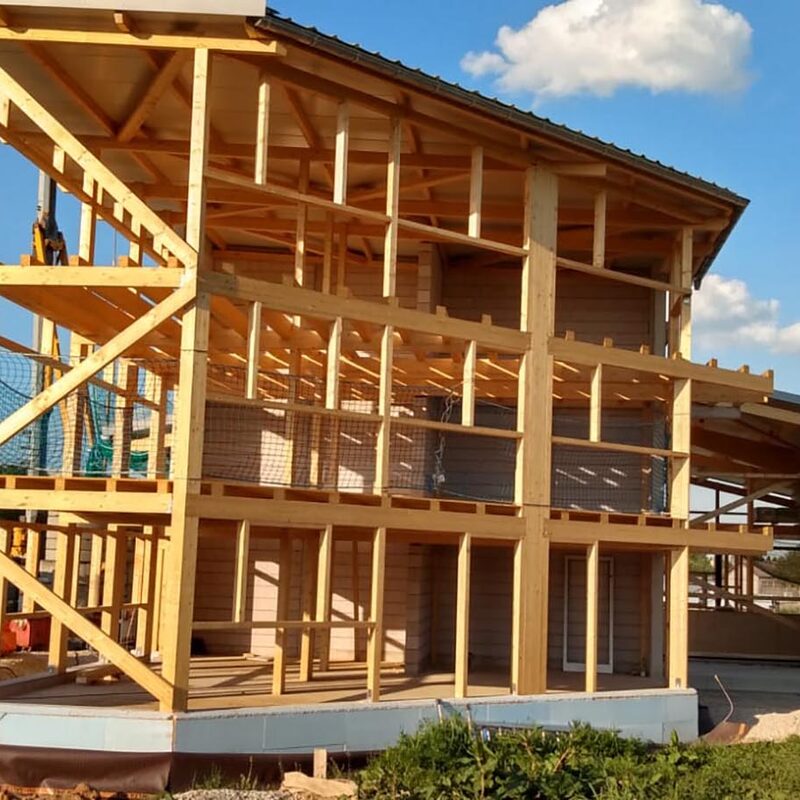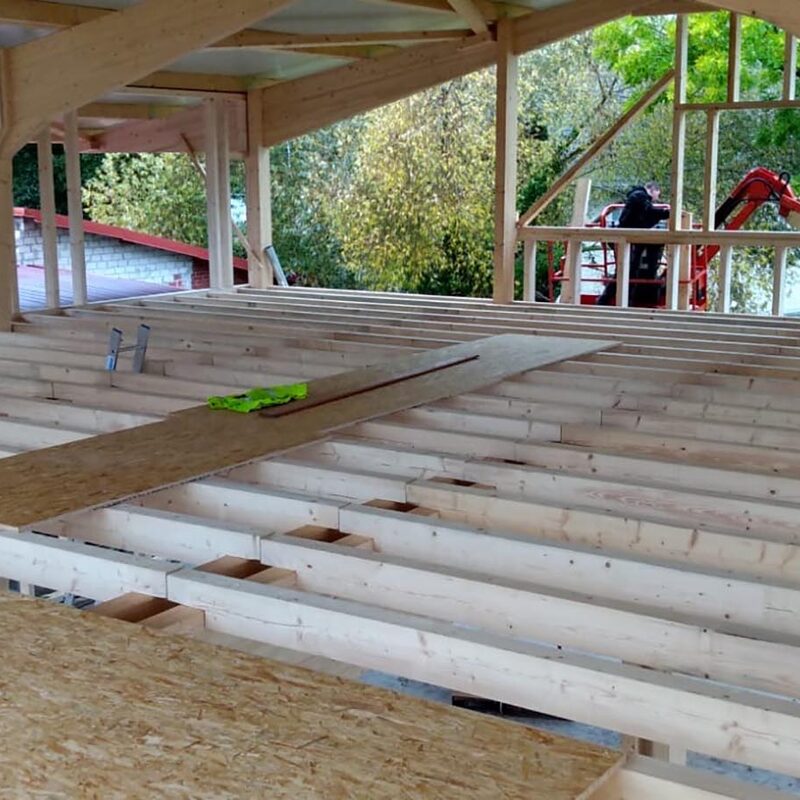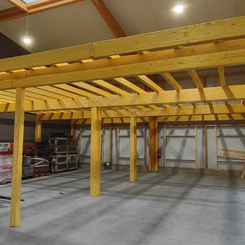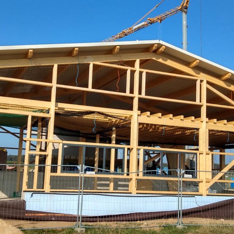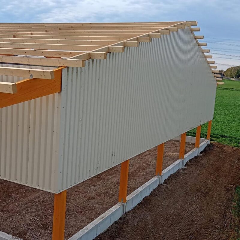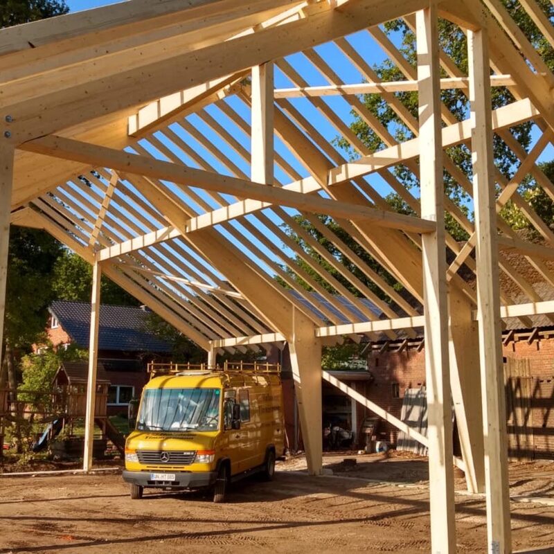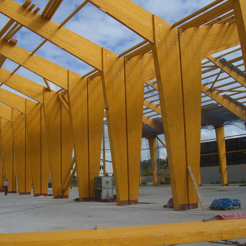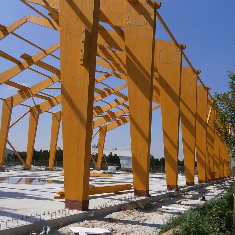 Vordächer sind ein- oder beidseitig möglich. Die max. Vordachlänge ergibt sich aus der Hallenbreite. Durch die konstruktive Verbindung ( Stabdübel ) zwischen Binderstütze und Binderriegel lassen sich alle gewünschten Dachneigungen leicht herstellen.