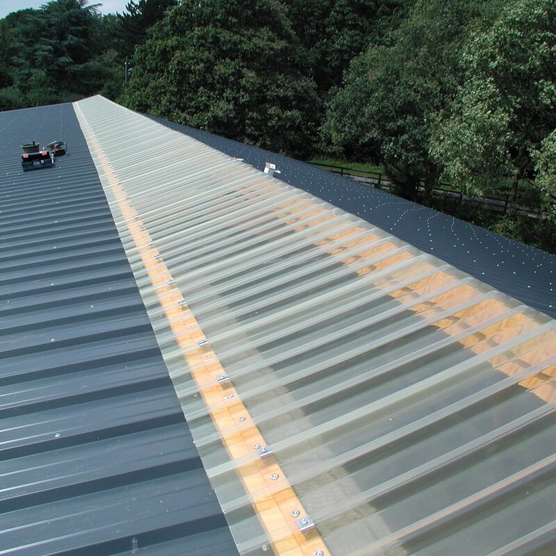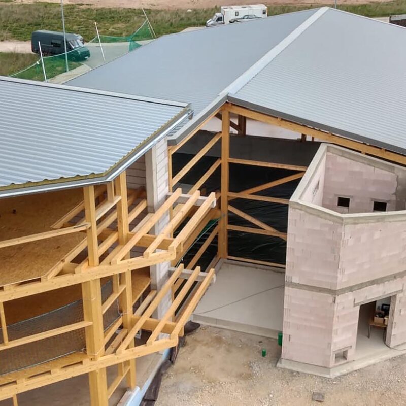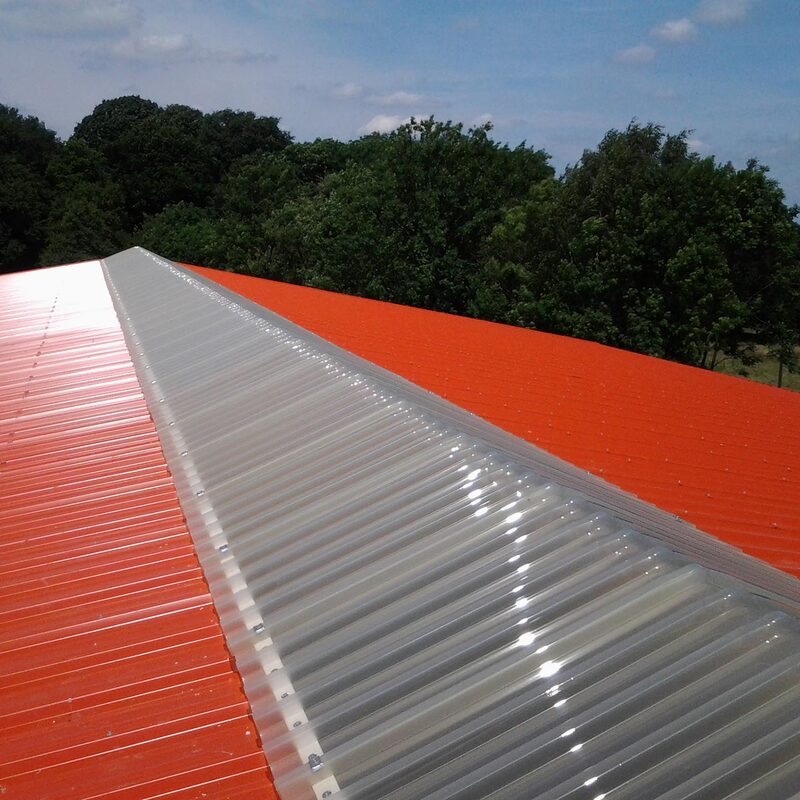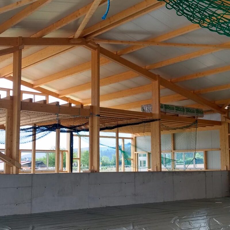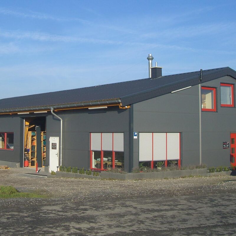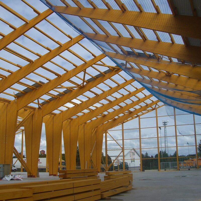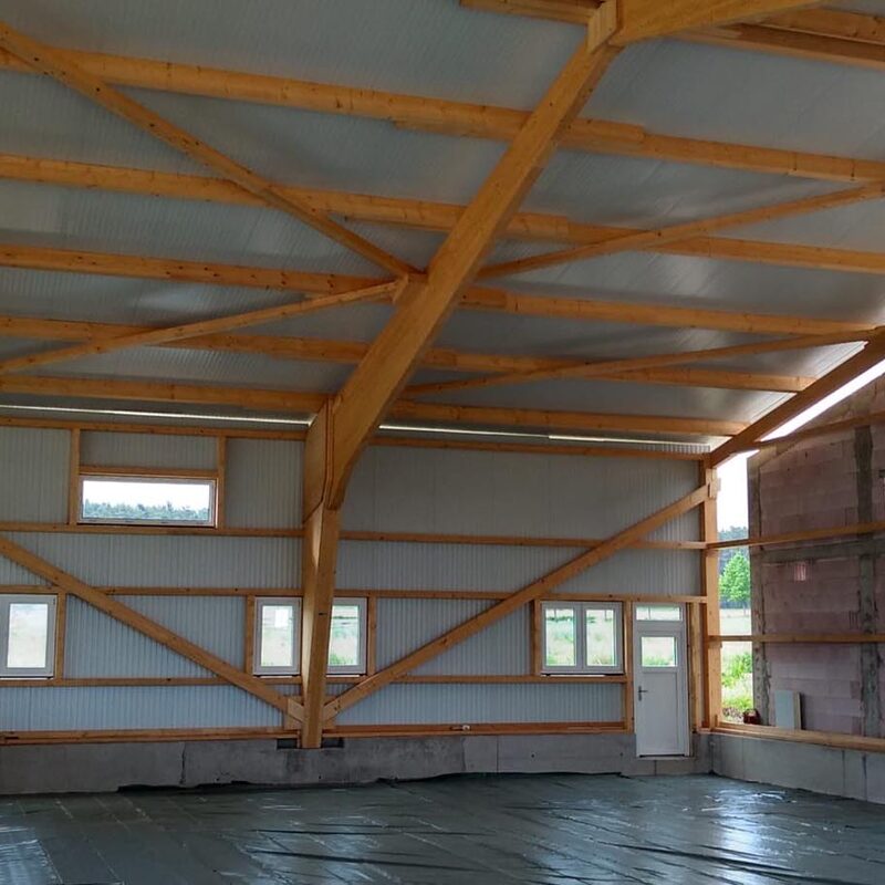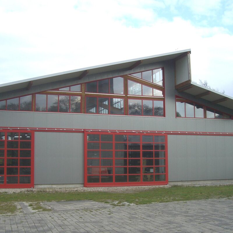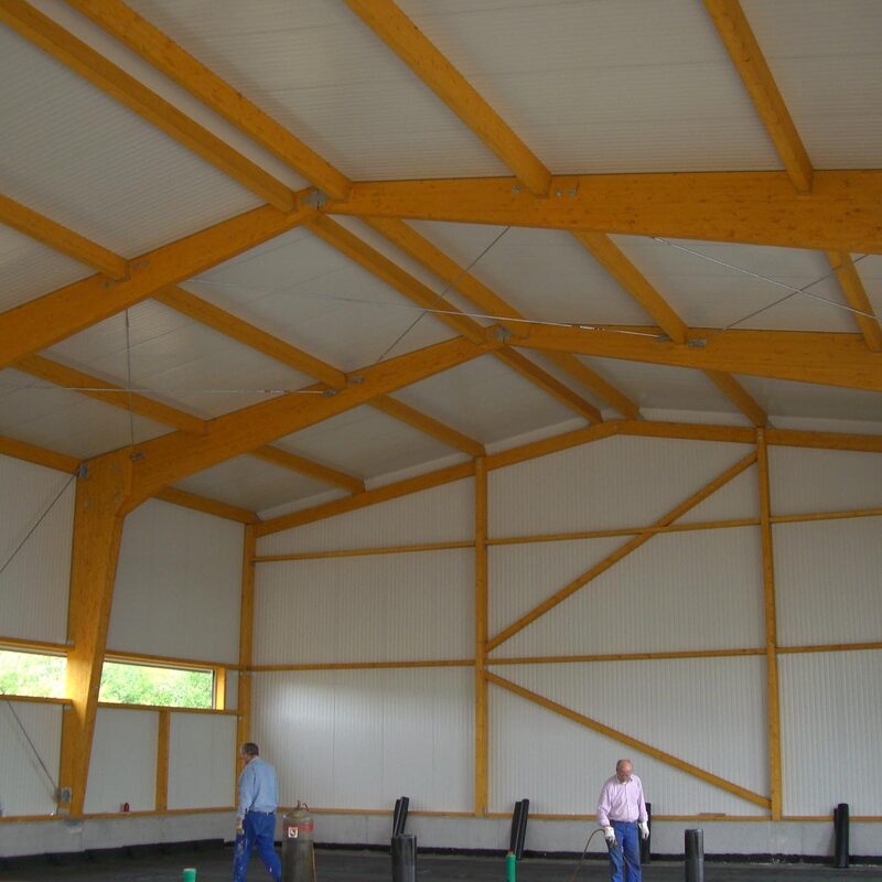 Dieser Hallentyp realisiert eine klare Lösung einer Produktionshalle o. ä. Mögliche Dacheindeckungen: asbestfreie Faserzementplatten, Sandwichelemente oder Trapezbleche mit Vlies. Alle Dacheindeckungen sind in diversen Farben möglich. Eine feuerhemmende Ausführung in F30-B nach DIN 41 02 ist mit geringem Aufwand realisierbar.